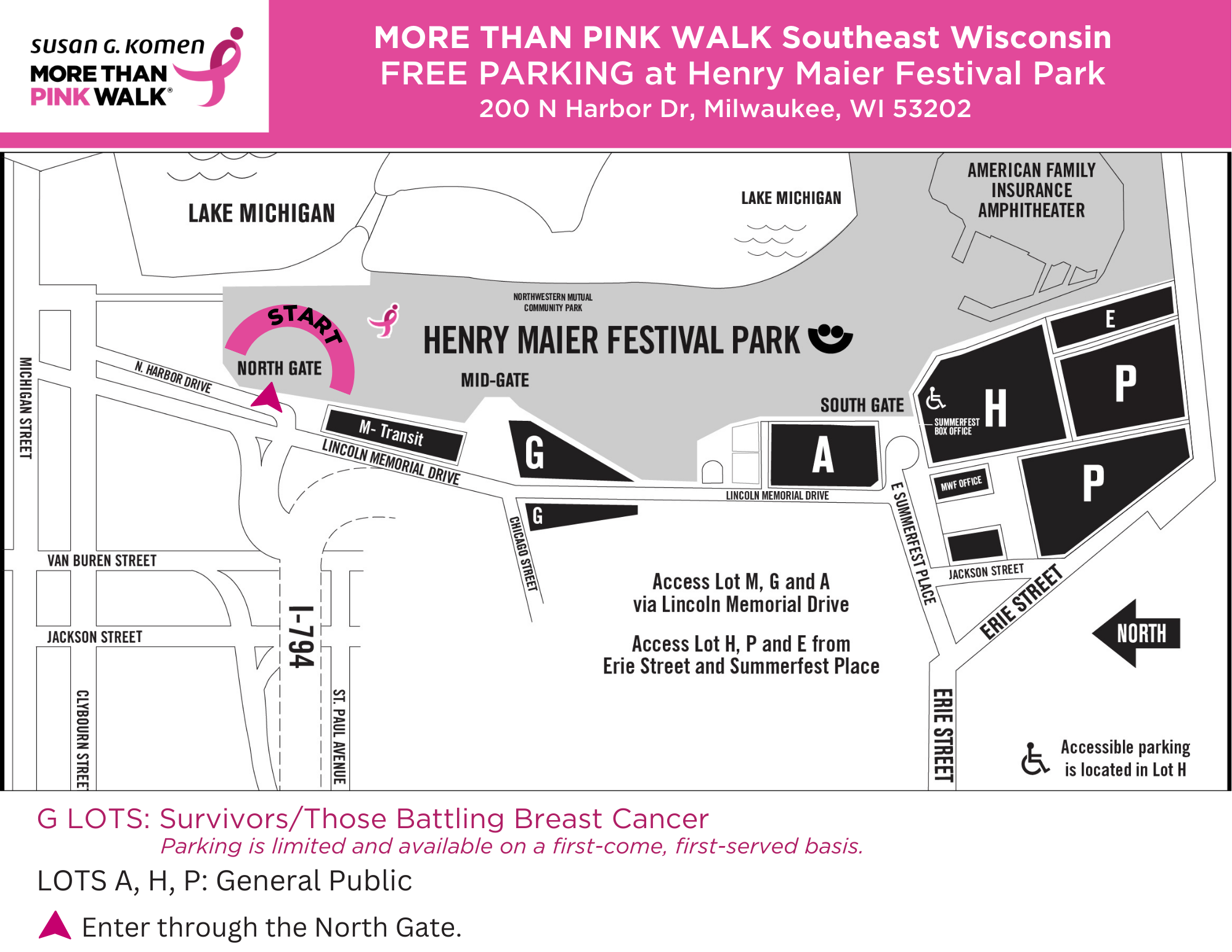 Free parking for all participants is located at Henry Maier Festival Park. A detailed parking map will be coming soon.