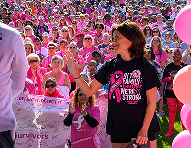 All survivors, those currently in treatment and those living with metastatic breast cancer will unite and walk into our Opening Ceremony.