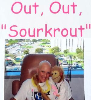 In 2005 she was diagnosed with invasive ductile carcinoma. With her oncologist, she nicknamed the disease "Sourkrout" and launched her own anti-cancer campaign: "Out, Out, Sourkrout." Children and teachers even made posters to cheer her on during chemo. Today, it's the name of our walk team. (In the most ironic and beautiful way, it has always been misspelled by this retired 1st grade teacher :)